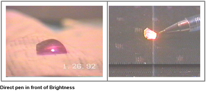 By moving the pen towards the brightness note on the observation that the shadow projected on the irregularities (Photon-structure) within the Visual Circle.