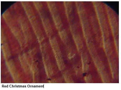* During manufacture of this type of Christmas Ornament, it is necessary blowing to shape the glass material in round shape, then I believe the internal pressure of the blowing on the microscopic glass structure would shape the string structure (Pipes ). With cooling and the dye applied to the end of the process, solidify the tubular microscopic texture of the material.