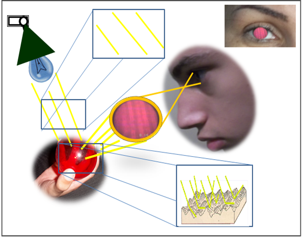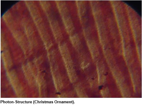 It is the physical interaction of light (Particle = photons) with the surface of a material (Brightness), noting relief images (Photon-Structure) of the uneven surface of the material inside a circular display (Visual Circle) generated by the eye observer (Crystalline). "