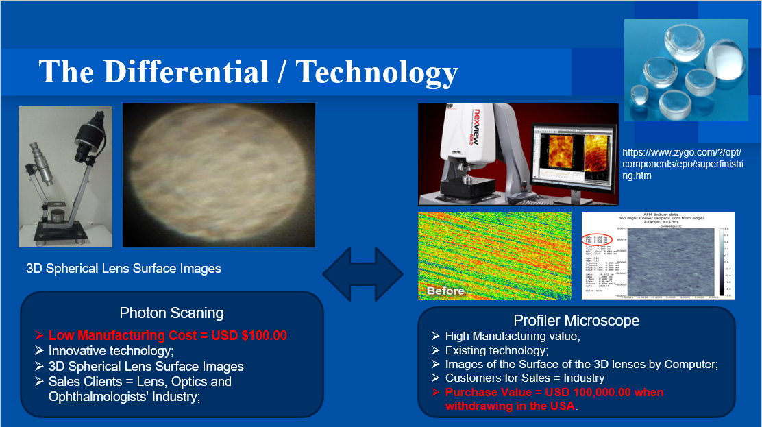 The technology developed by the Photonic Scanning Effect in question generates the Photonic Scanning Microscope, innovative equipment that does not apply the principle of light refraction for its operation. In such a way that companies in this market would have to adapt to this new technology, opening a large commercial market.